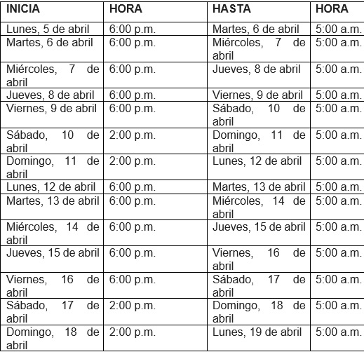 El horario de toque de queda y ley seca que entra a regir a partir de esta noche en los 22 municipios del Atlántico es el siguiente: