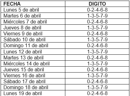Podrán ingresar a los establecimientos según la relación a continuación: